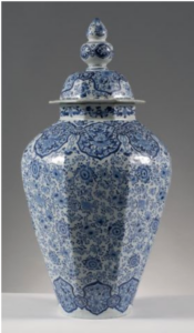 Fig. 3 Large vase with cover, one of a pair, marked AP for Anthonij Pennis, owner of De Twee Scheepjes (The Two Little Ships), factory from 1764 to 1770, and later by his widow, Pennis-Overgaauw, from 1770 to 1782, Collection of the Estonian Art Museum (inv. nr. EKM j 46248/ab Mi 162/ab)