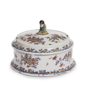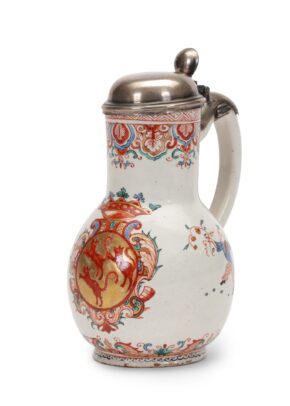 With less than 70 known black decorated Delftware objects, this type of wares is considered the rarest and most refined objects produced by the ceramics factories in the city of Delft. A black Delftware bowl, also marked for Lambertus van Eenhoorn and with similar roundels with dragons, is in an American private collection.