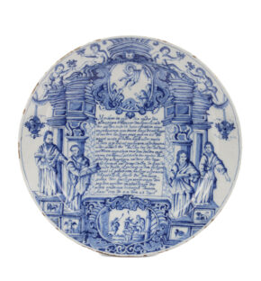 Under Pieter Adriaensz. Kocx, and even more prominently under the direction of his widow Johanna van der Heul, De Grieksche A emerged as one of the leading Delft factories specializing in polychrome wares. The factory’s production is distinguished by its refined enamel work and its sophisticated adaptation of international decorative idioms. Objects bearing the PAK mark consistently reveal a high level of technical assurance in color application and compositional clarity, reflecting a factory keenly responsive to contemporary taste while actively pursuing painterly and stylistic innovation.