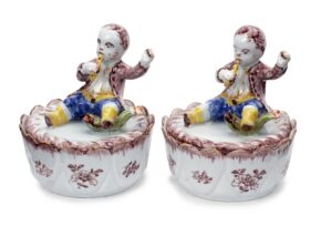 Of particular importance is the inscription De Rookende Amerikaan (The Smoking American), a designation that is rare and historically charged on Delftware tobacco jars. In seventeenth- and eighteenth-century Dutch usage, the term Amerikaan was often employed broadly and imprecisely, frequently functioning as a synonym for the Indigenous peoples of the Americas. In visual culture, the “American” was commonly represented as a Native American figure, identified by attributes such as feathered headdress, minimal dress, and the long-stemmed pipe, iconography clearly present on these jars. De Rookende Amerikaan reflects a generalized European conception of the New World and its inhabitants.