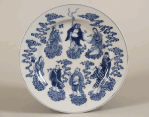 As a reward, the goddess Xi Wang-mu (the Queen Mother of the West) bestows upon Hou Yi the elixir of immortality. Before Hou Yi can consume it, his wife Chang’e drinks the elixir and flees to the moon, where she remains. In many versions Chang’e is accompanied by a rabbit or hare, the “moon hare”, who prepares the elixir of life from the osmanthus tree on the lunar surface. Chang’e seams to appear on a polychrome Delft dish holding a hare or rabbit (Fig. 5) This depiction was probably unintentional, but it nonetheless illustrates how Chinese cultural and symbolic motifs were adopted and integrated into Dutch Delftware.¹²