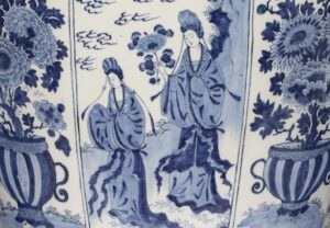Fig. 1 Detail of two Lange Lijs figures on a Large Blue and White Garniture, Delft, circa 1690, Former Aronson Collection (inv. no. D2532)